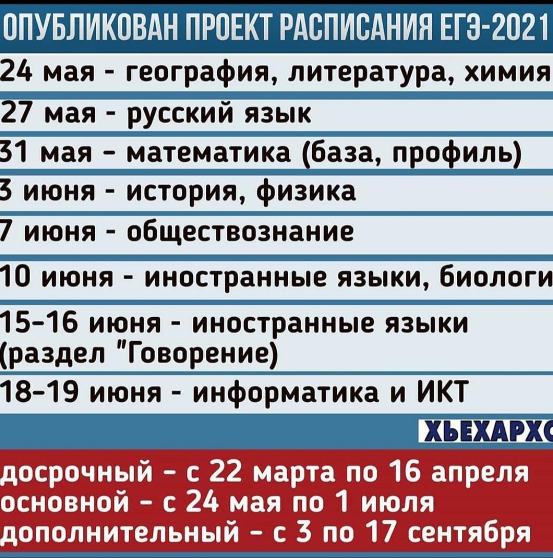 Расписание ЕГЭ-2021