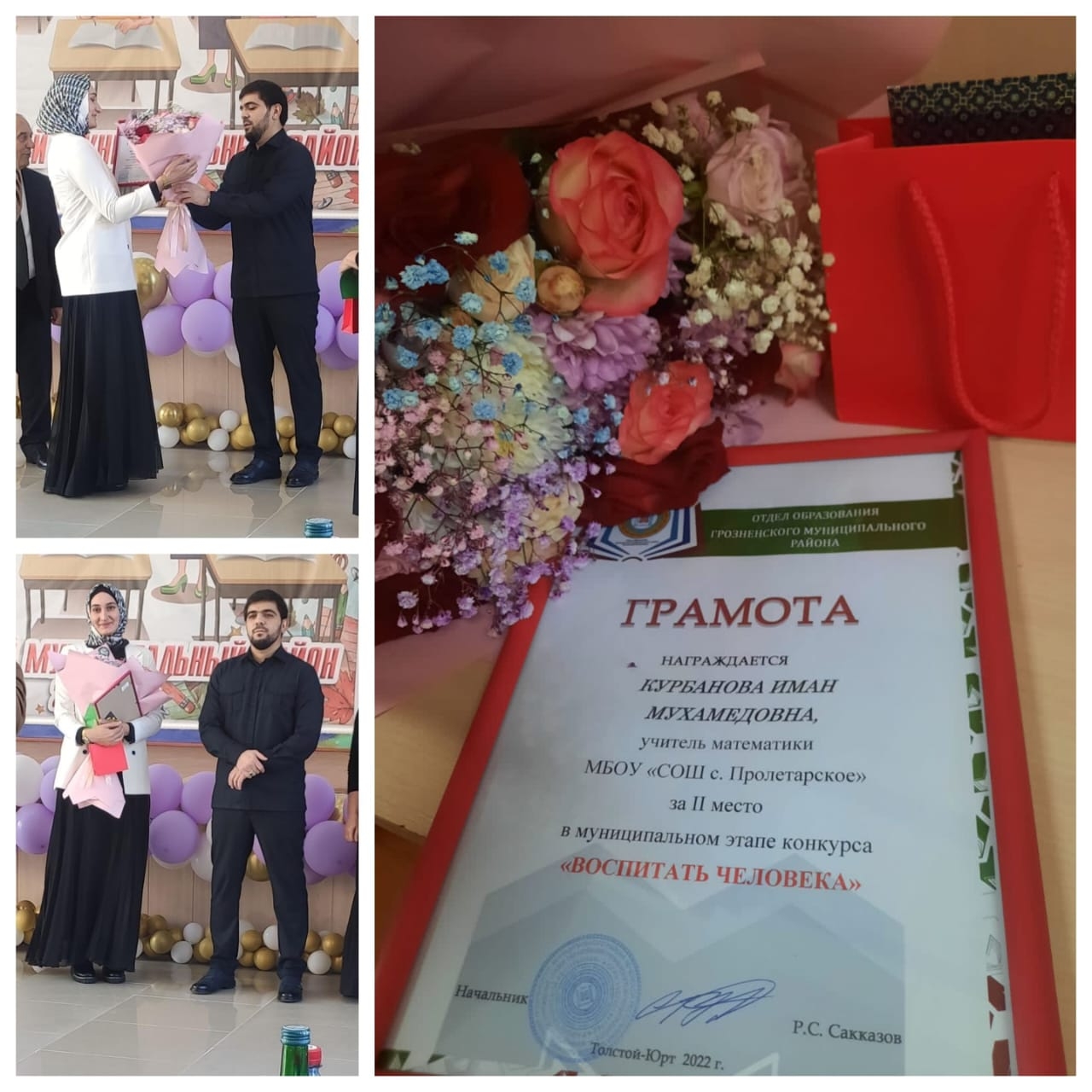 Учитель математики МБОУ "СОШ с.Пролетарское" Курбанова Иман Мухамедовна заняла 2 место в районном конкурсе "Воспитать человека". Молодец!!! Дала т1ахье беркате йойла, Иман Мухамедовна!