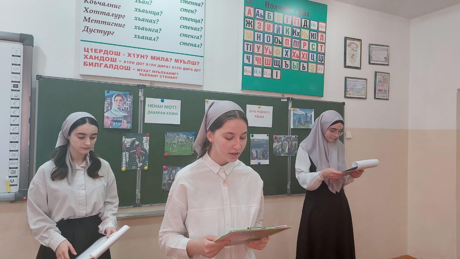 «В Международный день родного языка все языки признаются равными, поскольку каждый из них уникален. В нашей Республике любовь к родному языку можно сравнить с чувством истинного патриотизма», с такими словами открыли мероприятие ведущие, ученицы 11-го класса Гулуева Айшат, Висаитова Хеда и Эльнакаева Жарадат.
